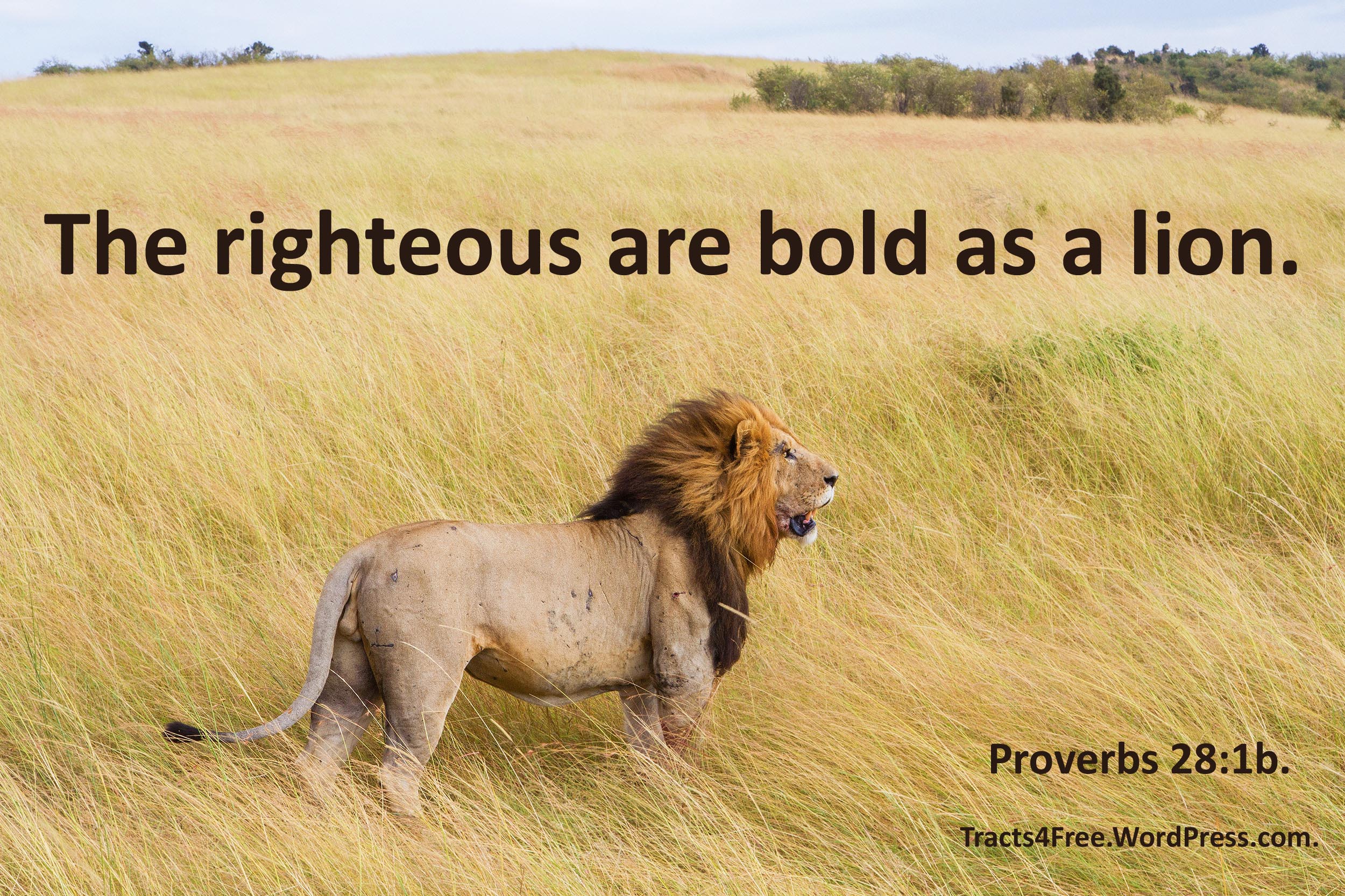 Bold as a lion poster. Peoverbs 28:1. Photo: Bhargava Srivari on unsplash,cim. Poster: David Clode.