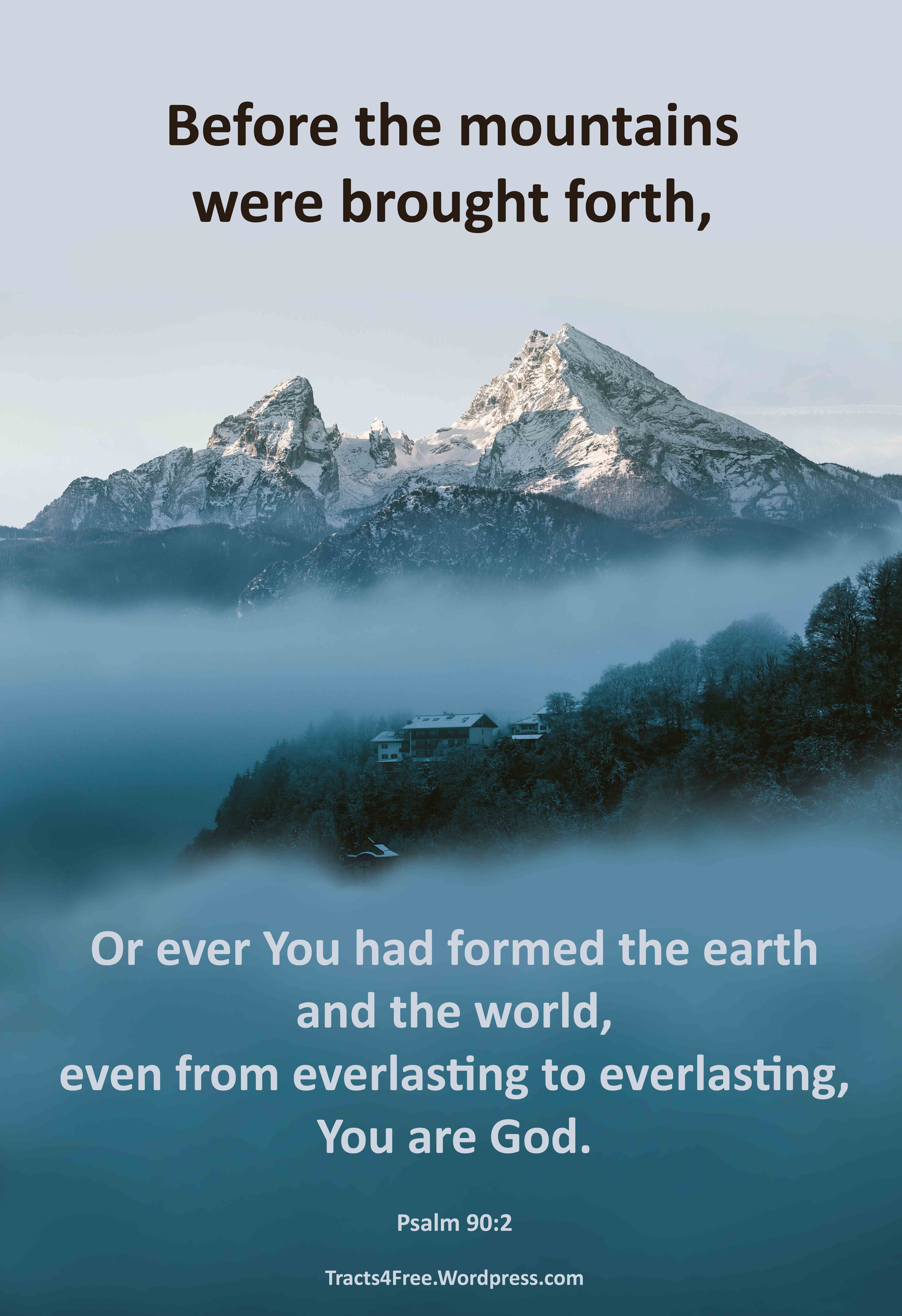 You are God Bible verse poster. Psalm 90:2. Photo: Marc Zimmer on unsplash.com. Poster: David Clode.