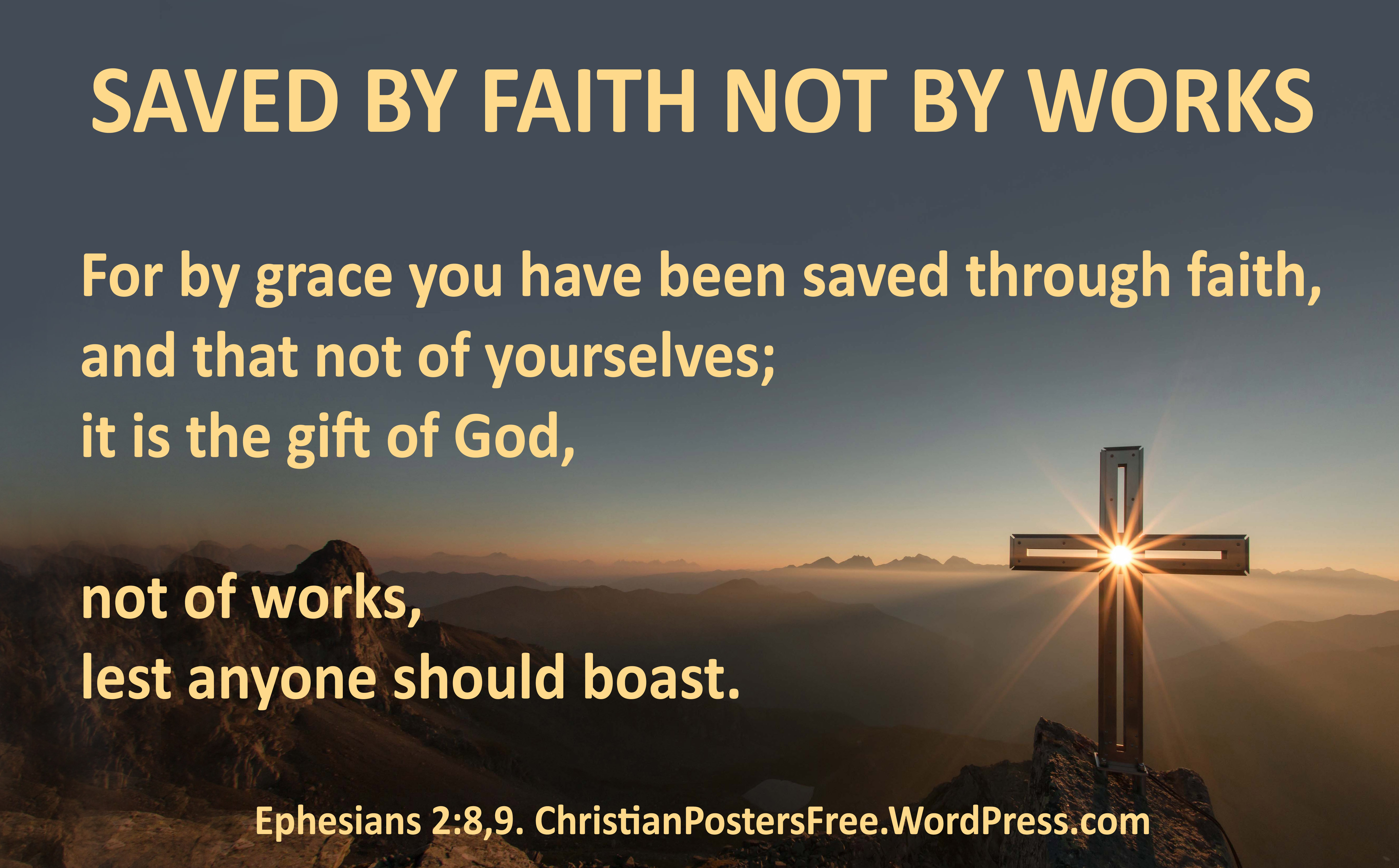 “Saved by faith not by works” Ephesians 2:8,9 Christian poster. Photo: Eberhard Grossgasteiger on Unsplash.com. Poster: David Clode.