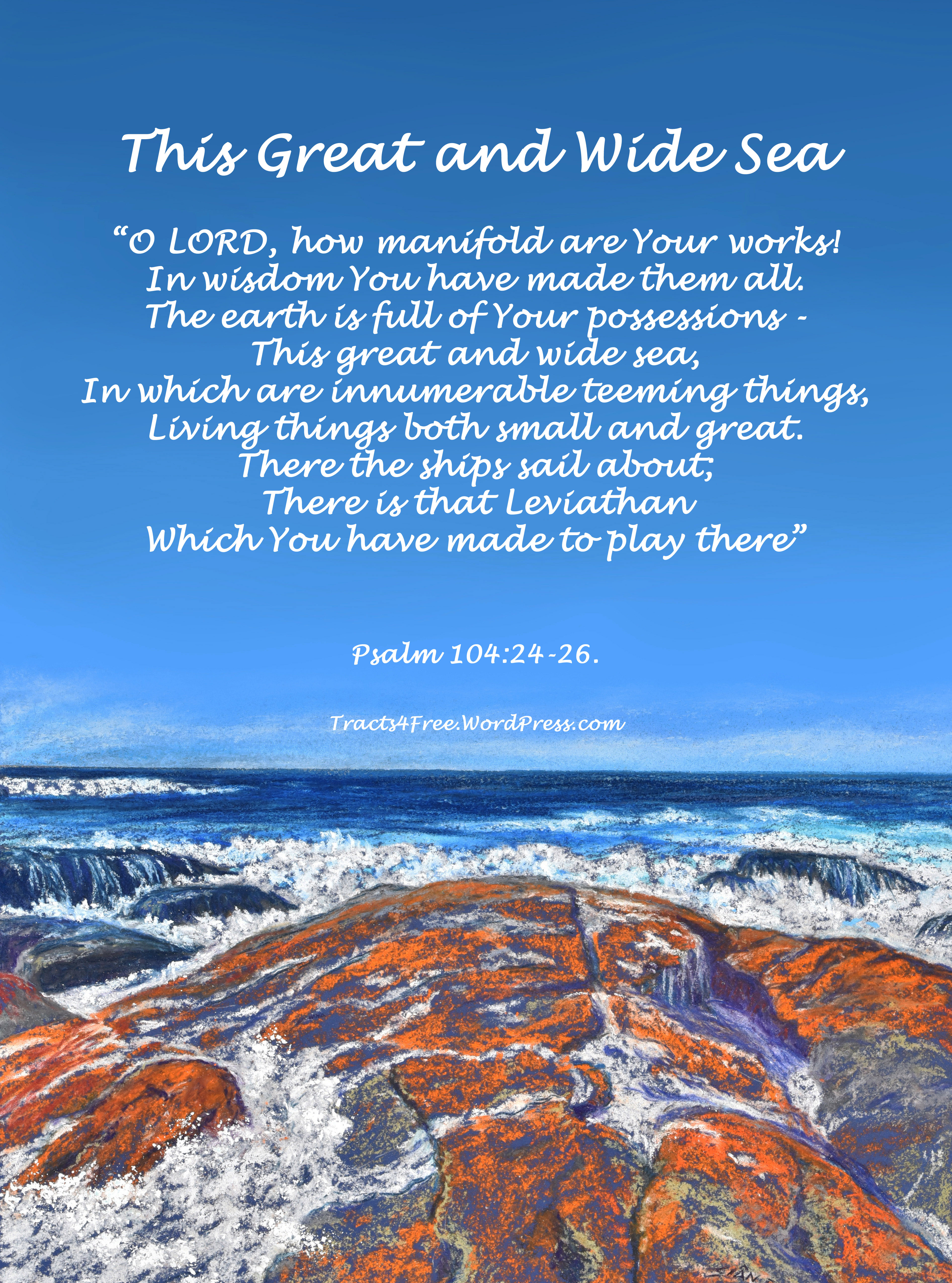 This Great and Wide Sea poster. Psalm 104:24-26. Pastel painting by Sian Butler (my mother), poster by David Clode.