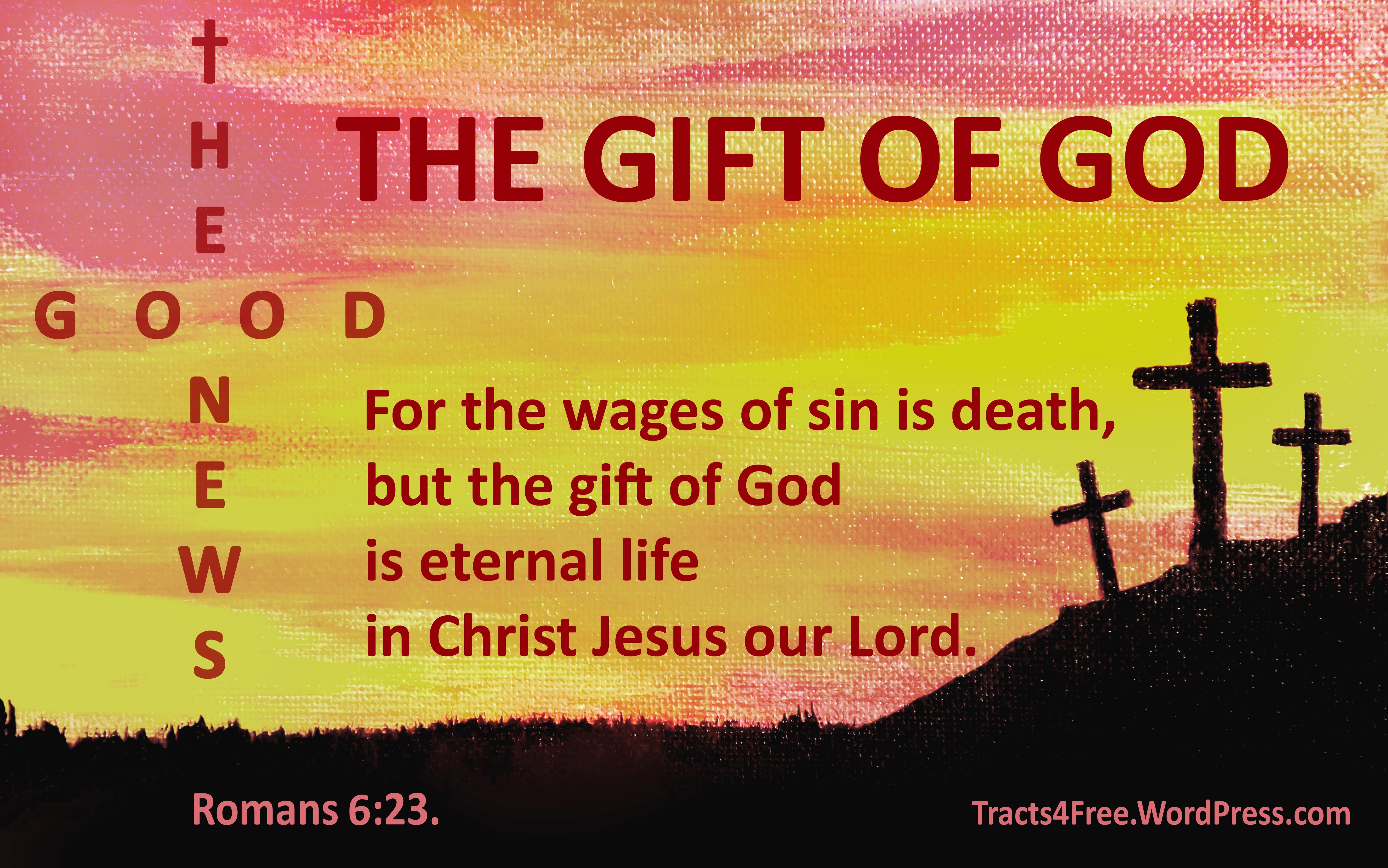 “The Gift of God” free Christian poster. Romans 6:23. Painting by Laya Clode, poster by David Clode.